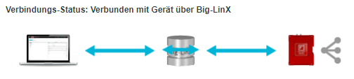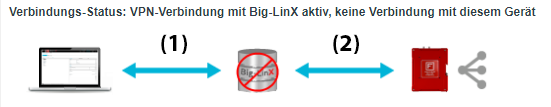 Nach dem Aufbau von VPN-Verbindungen zwischen dem Rechner des Servicetechnikers und der Big-LinX Plattform (1) sowie zwischen der IRF und der Big-LinX Plattform (2) besteht die folgende Situation:
