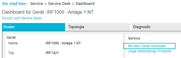 Nun muss der Servicetechniker auf den Textlink "Mit dem Gerät verbinden ..." klicken: