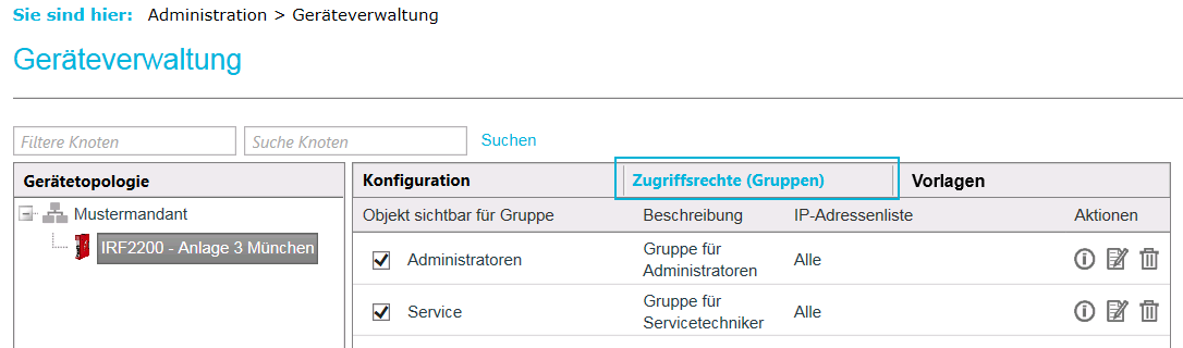 Schritt 5: Geben Sie auf der Registerseite "Zugriffsrechte (Gruppen)" an, welchen Benutzergruppen das neue Gerät später angezeigt werden soll.